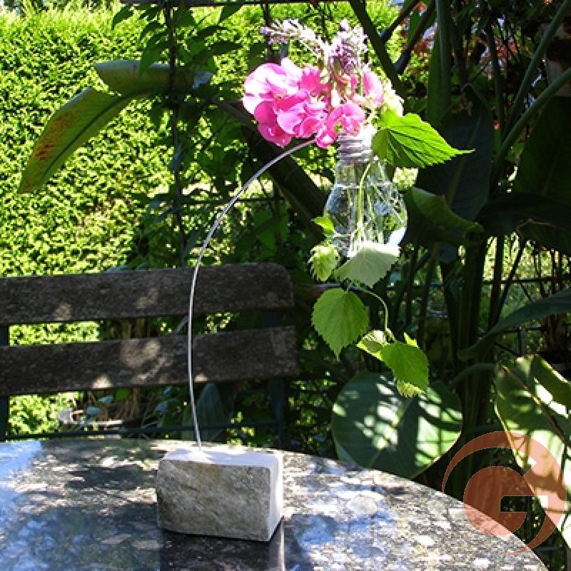 Für eine ausserordentliche Dekoration sorgt die Glühbirne als schwebende Blumenvase. Irgendeine Blume, ein Zweig oder sonstige Deko findet sich immer um sie über dem Tisch schweben zu lassen. Zeitlos charmant.